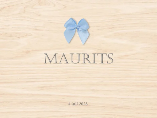 Luxe houten bewaardoos baby met afbeelding van een strikje en de naam in grote klassieke letters (7909).