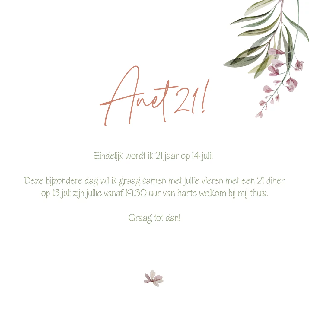 21-diner uitnodiging krans prachtige bloemen en takjes rose foliedruk