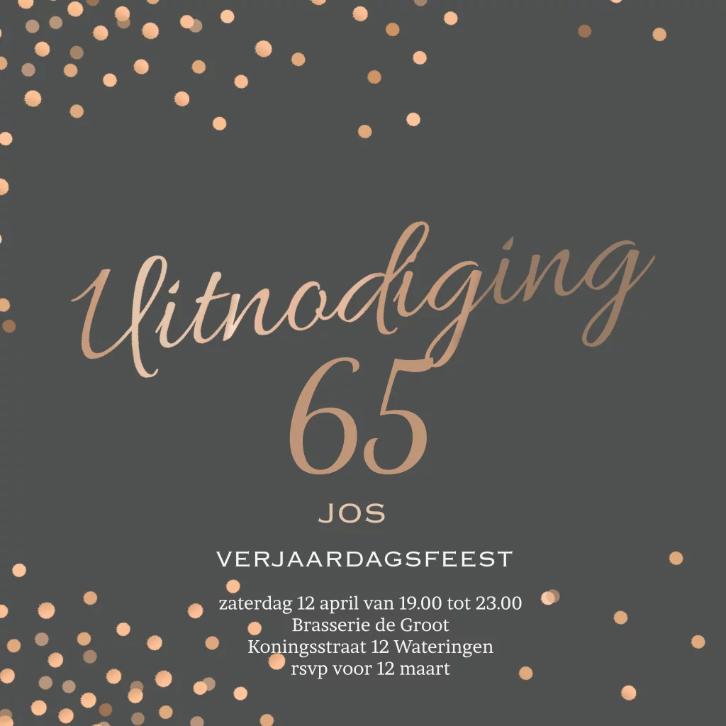 65 jaar verjaardag uitnodiging koper tinten confetti