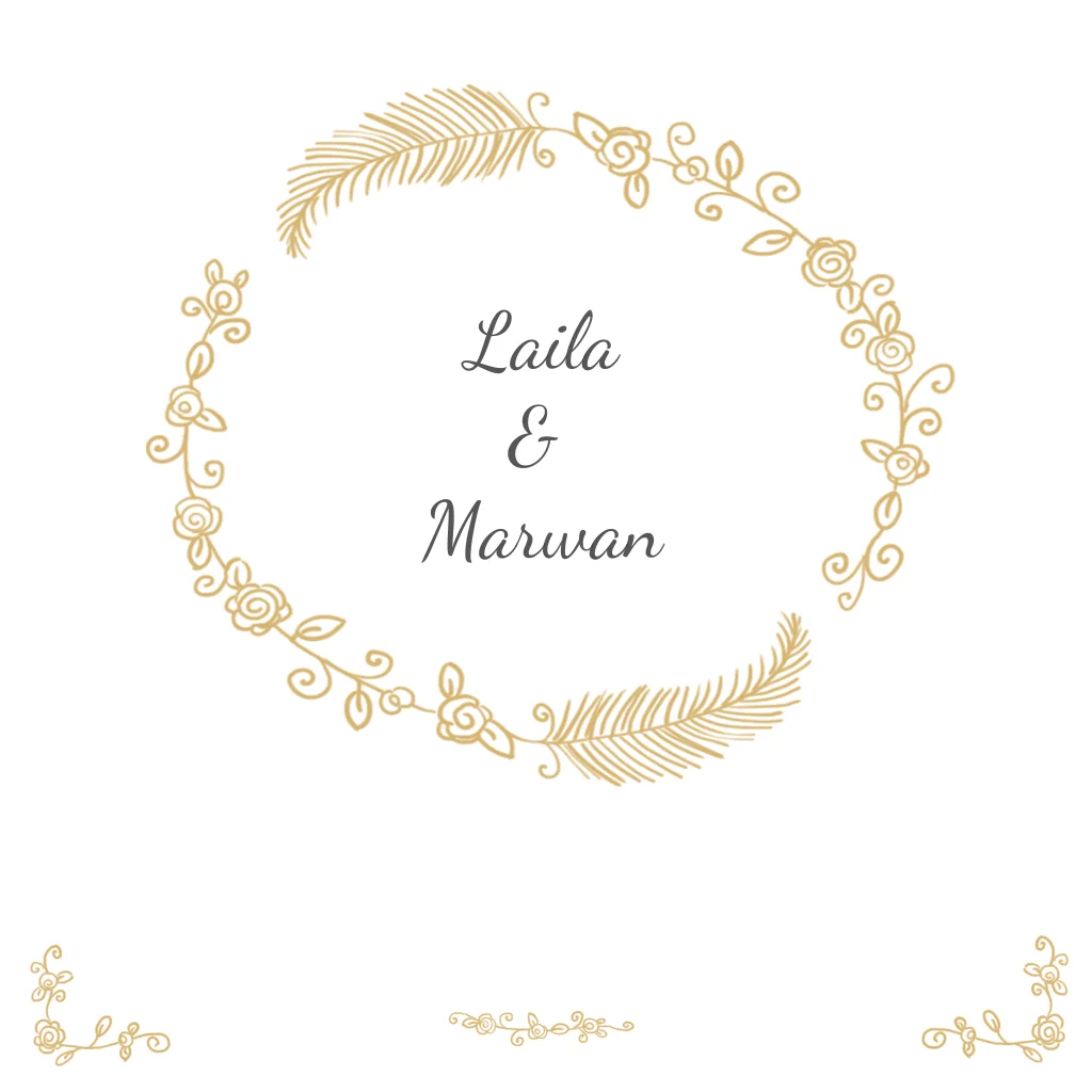 Arabisch islamitische trouwkaart met goudkleurige krans van bloemen.