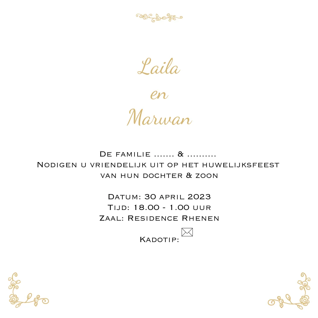 Arabisch islamitische trouwkaart gouden met krans van bloemen