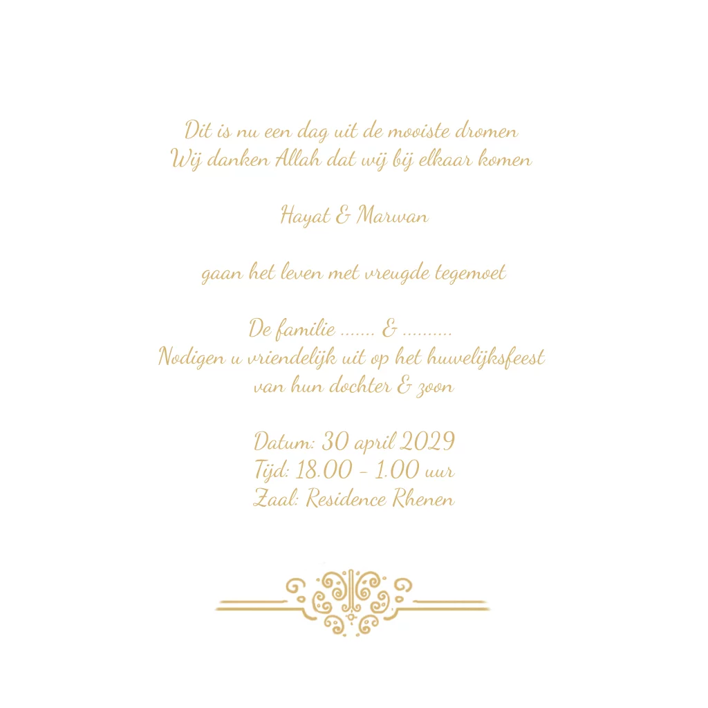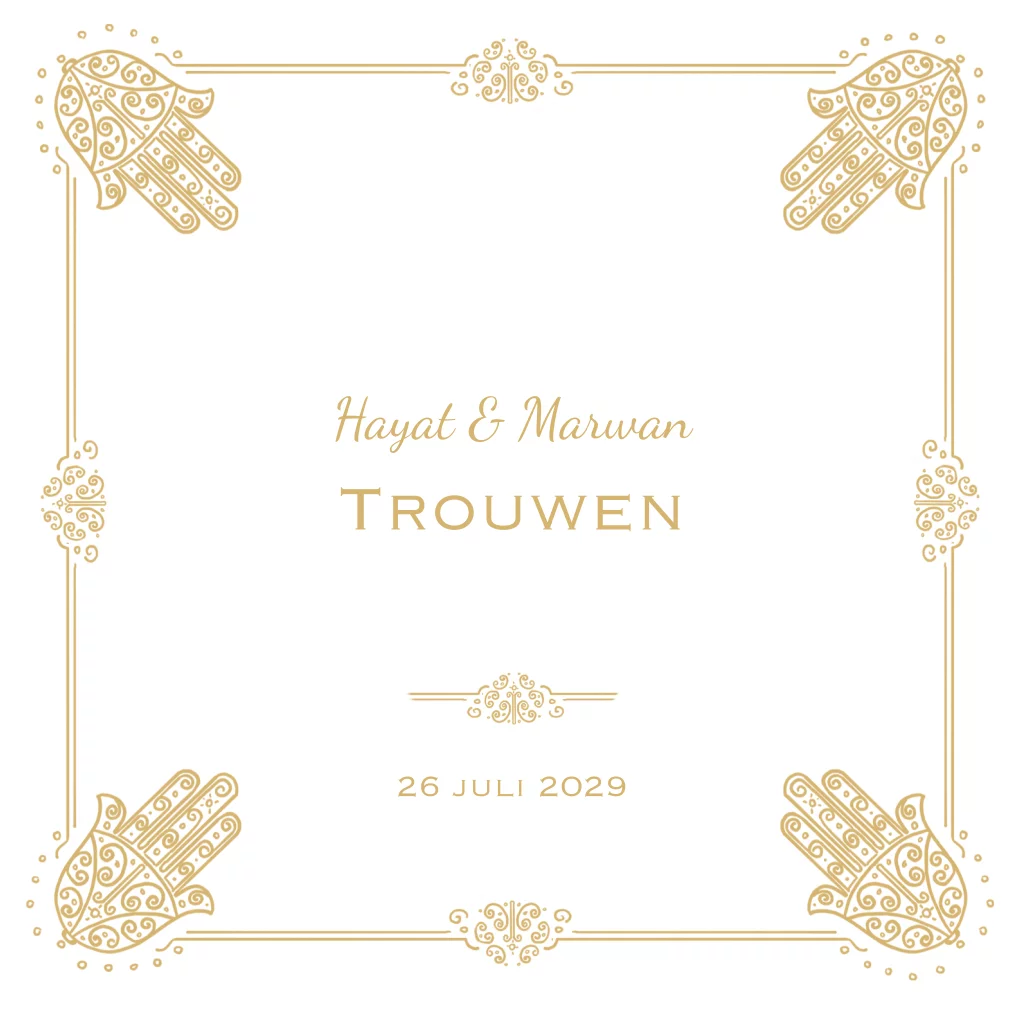 Arabische islamitische trouwkaart goudkleur handje fatima. (1809)