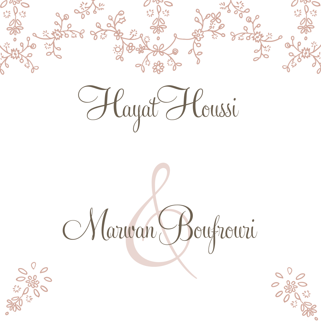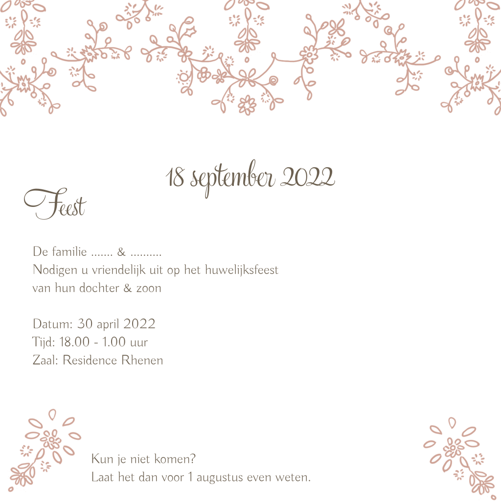 Arabische witte trouwkaart met parelmoer bruine bloemetjes