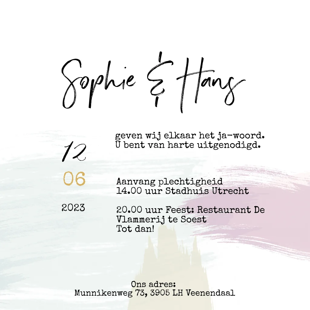 Bijzonder mooie trouwkaart waterverf kleuren. (8240)