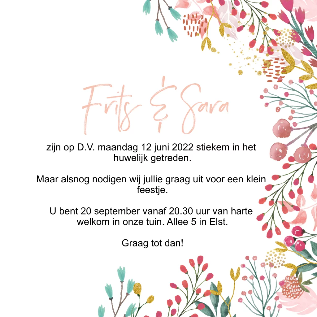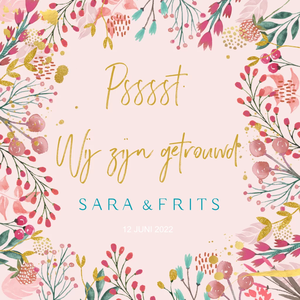 Bijzonder mooie wij zijn getrouwd trouwkaart waterverf bloemenkaart roze. (8291)