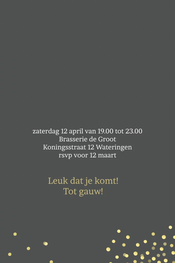Staande uitnodigingskaart goudkleurige confetti om te gebruiken als uitnodiging voor een verjaardag 50 jaar (3798)