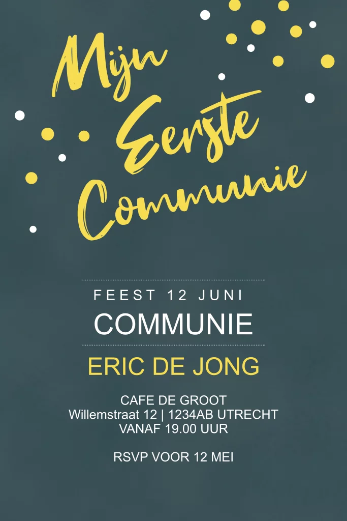 Uitnodiging eerste communie feest met ronde kanten en velvet groen. (22354)