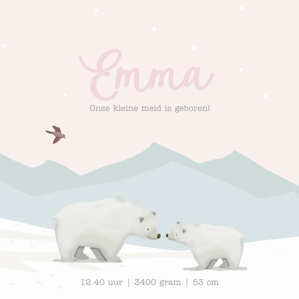 Geboortekaartje meisje met ijsbeertjes