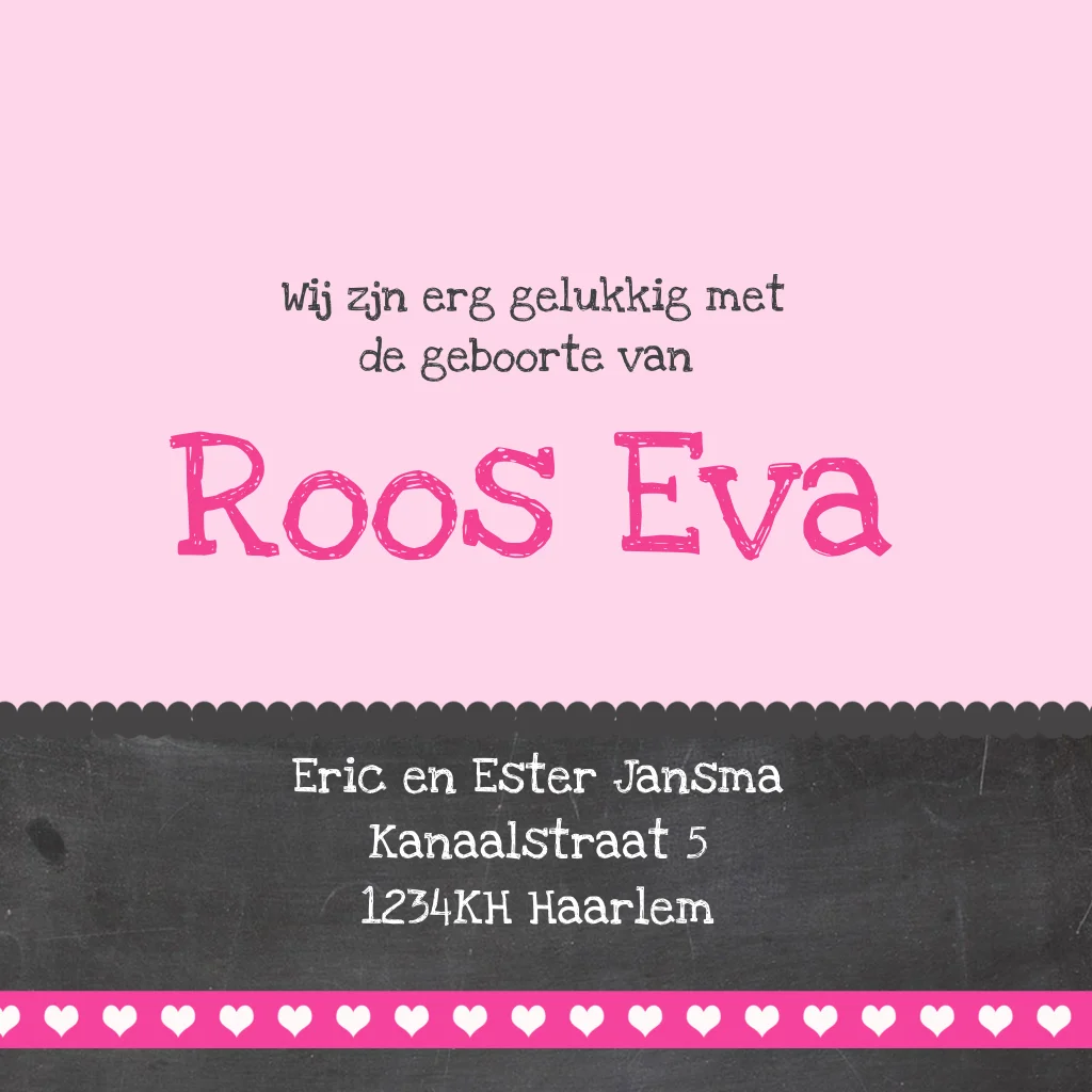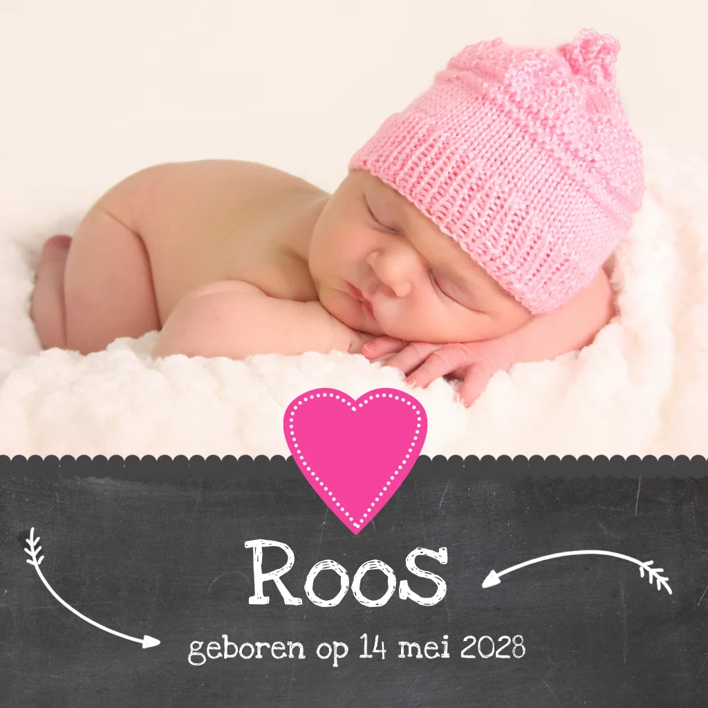 Geboortekaart meisjes krijt bord roze hart. (1296)