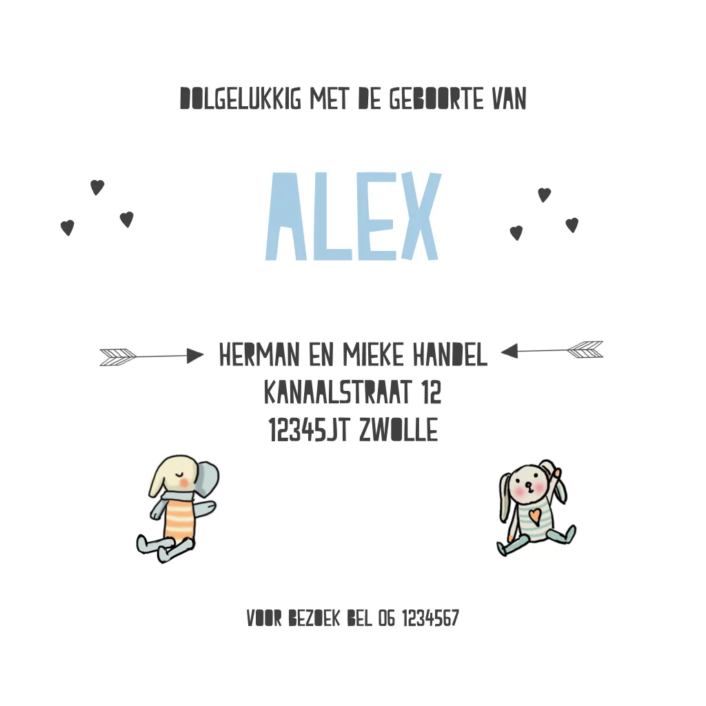 Geboortekaartje waslijn met kleding voor lief jongetje, leuke pijltjes en hartjes met vogeltjes. (5037)
