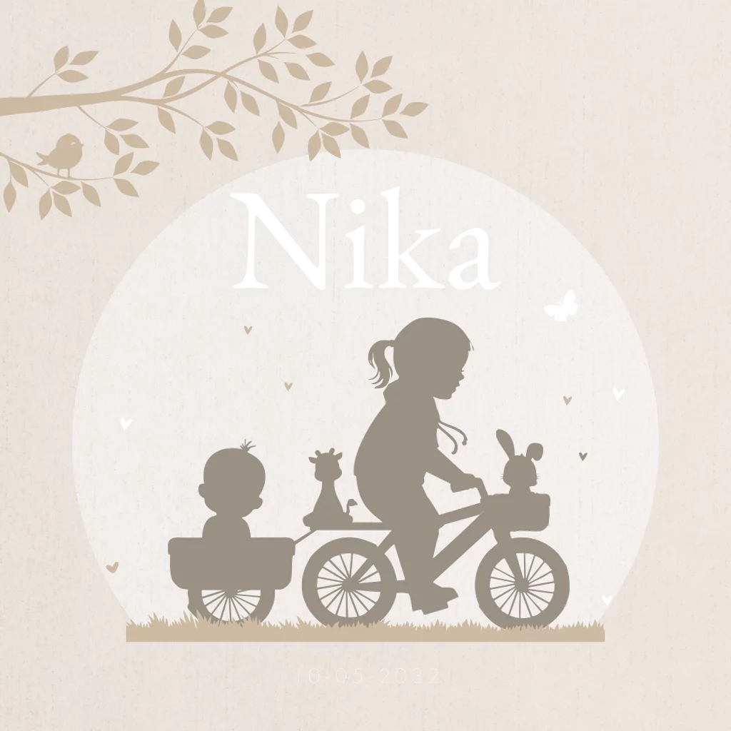 Geboortekaartje 2e kindje meisje in bakje met fiets en grote zus