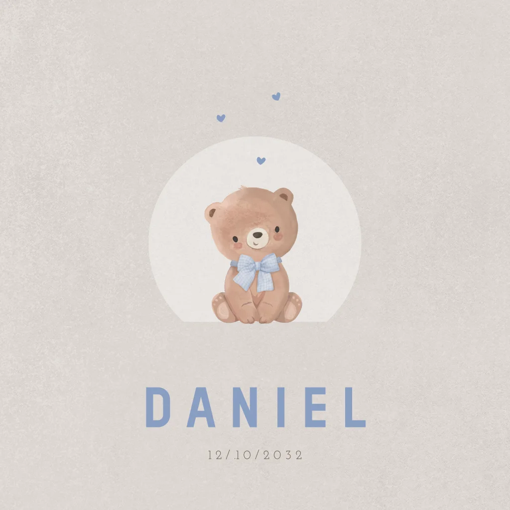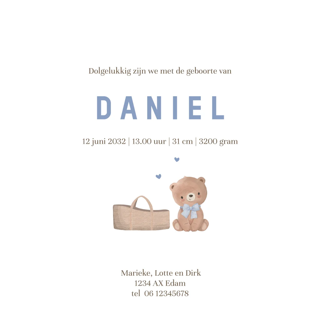 Geboortekaartje baby jongen lief beertje met strikje
