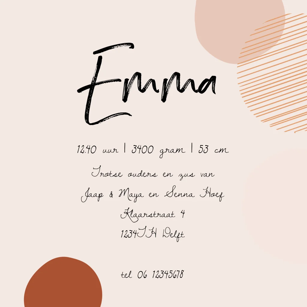Abstracte vormen geboortekaartjes voor een meisje in terra kleuren (10010)