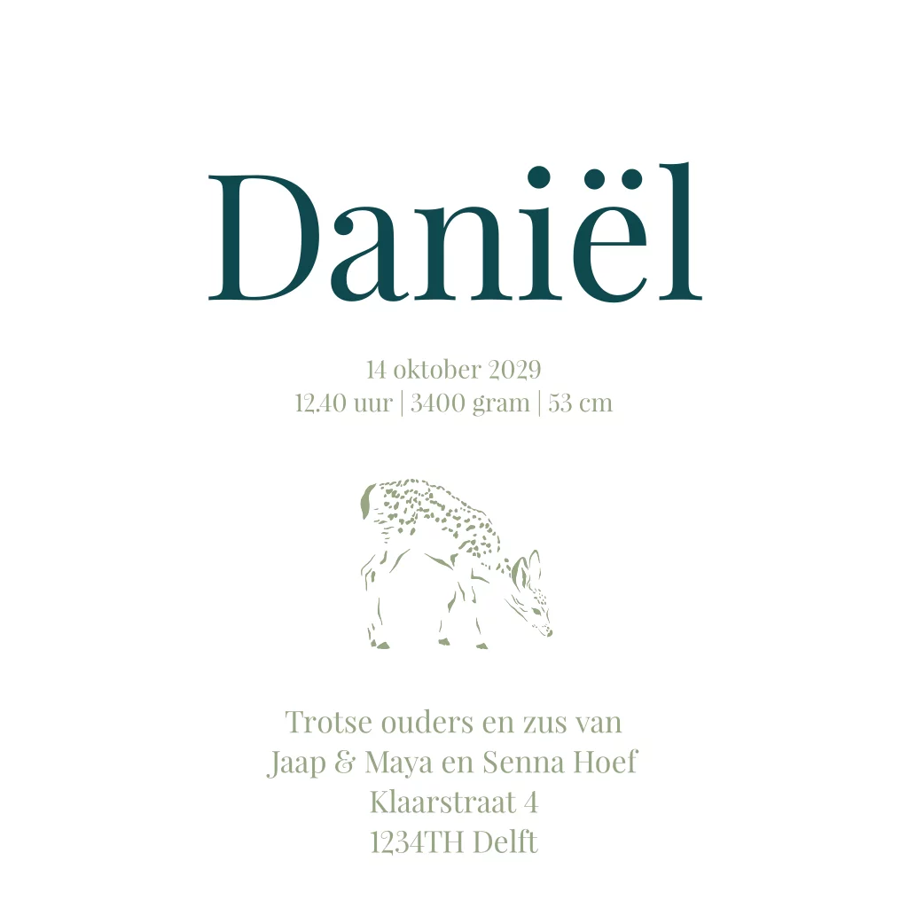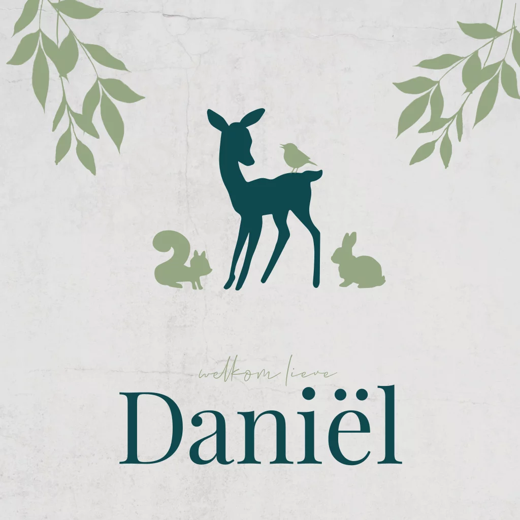 Geboortekaartje jongen bosdieren hert eekhoorn en takjes