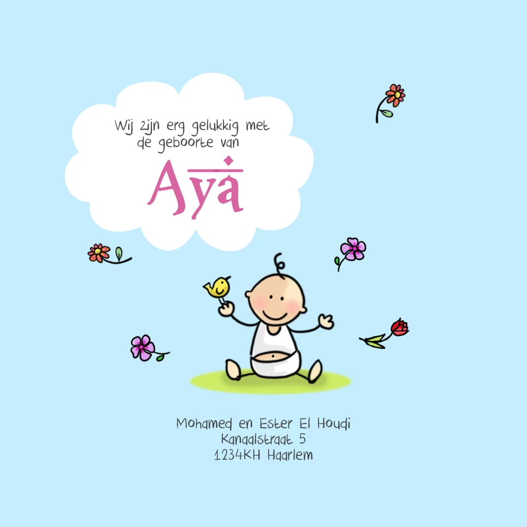 Geboortekaartje meisje arabisch islamitisch op wereldbol