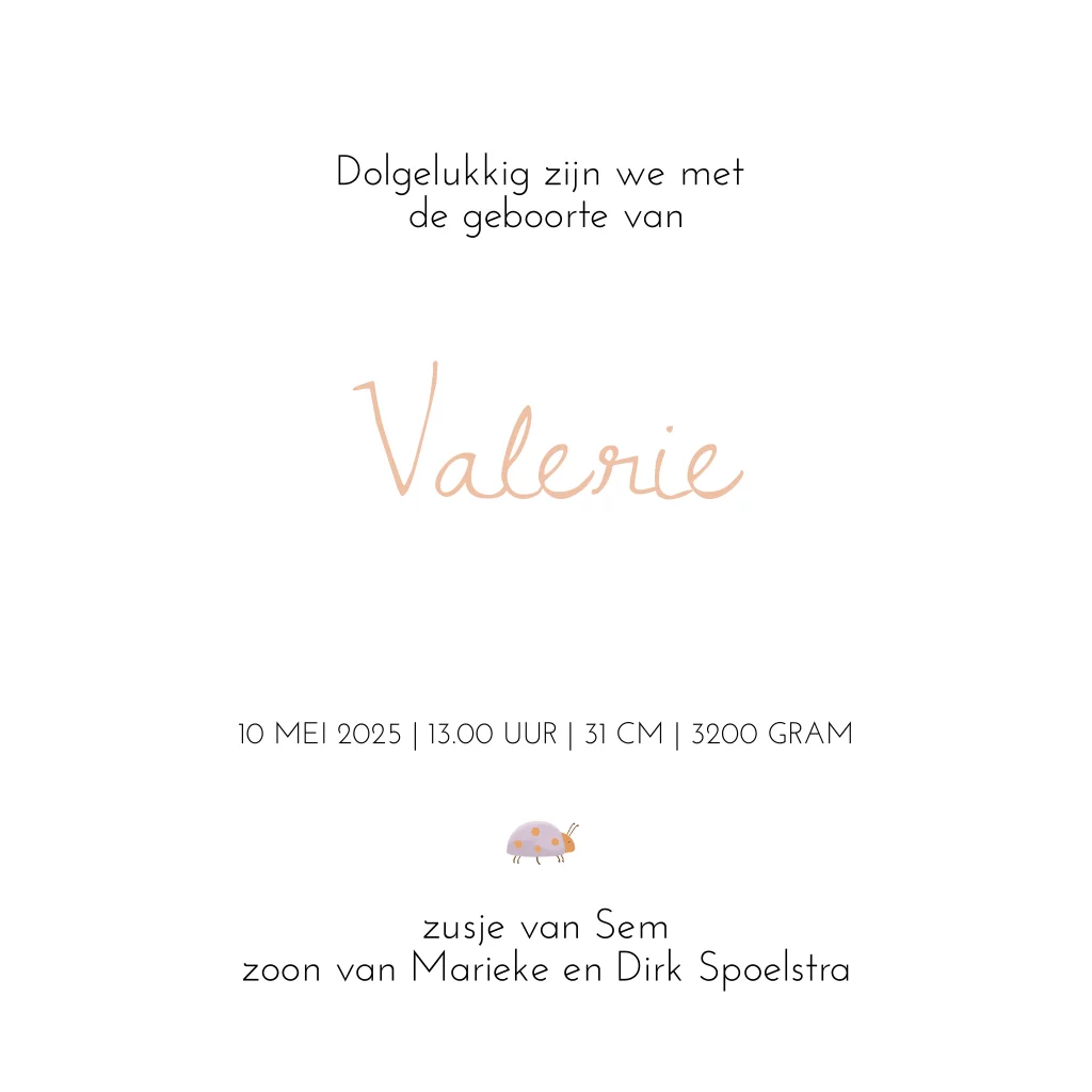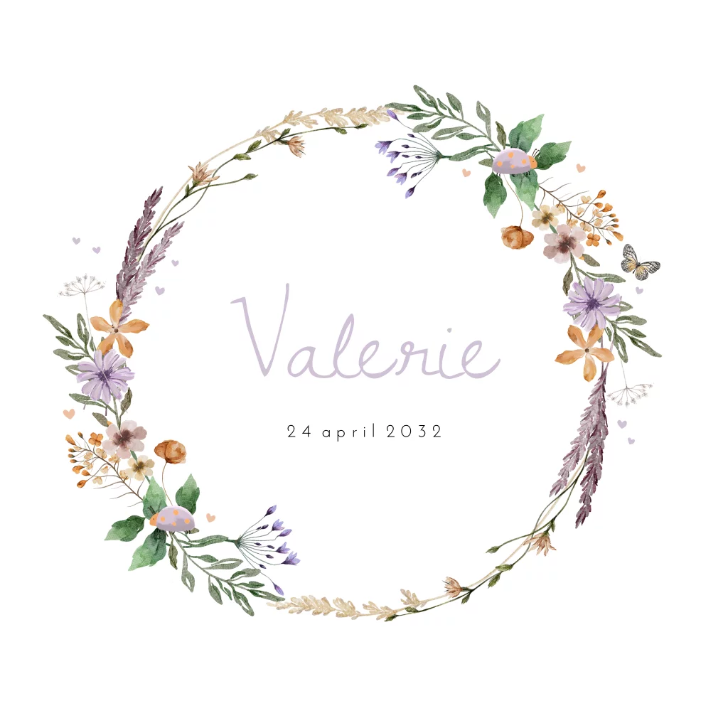 Geboortekaartje meisje bloemenkrans met hartjes. (24424) (Dit kaartje heeft nu ronde hoeken a € 0,30 per kaartje)