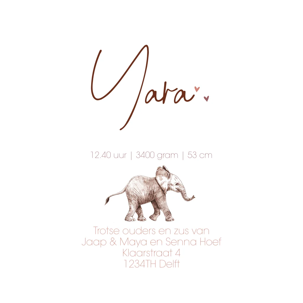 Geboortekaartje jongen klein lief olifantje natuurlijke kleuren