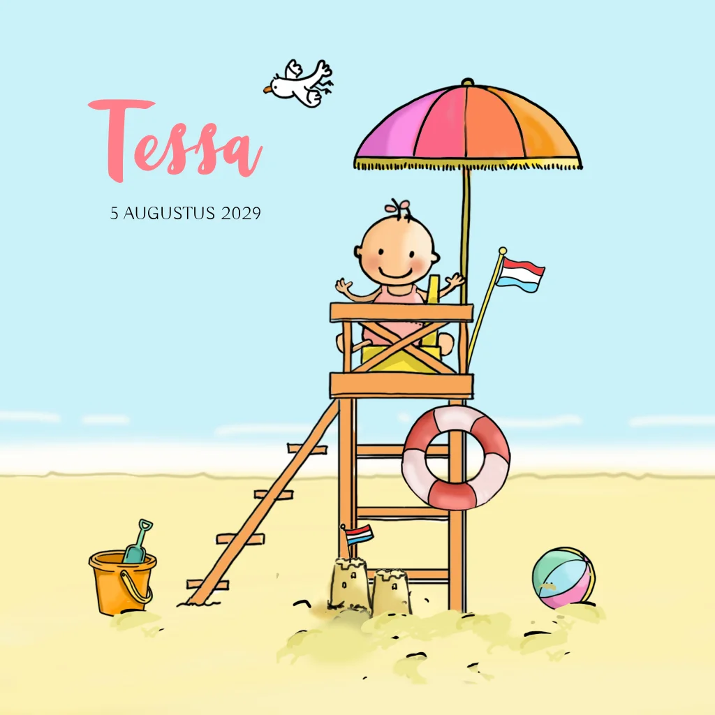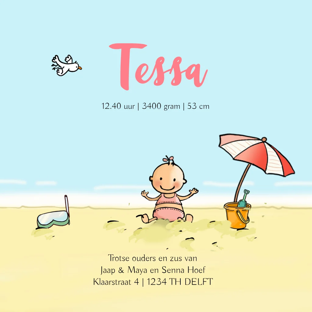 Geboortekaartje meisje zomer op het strand