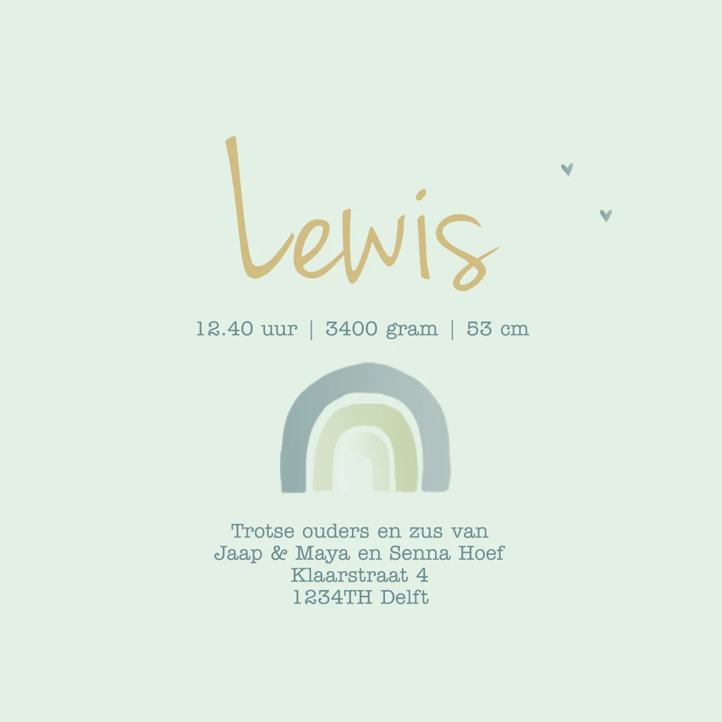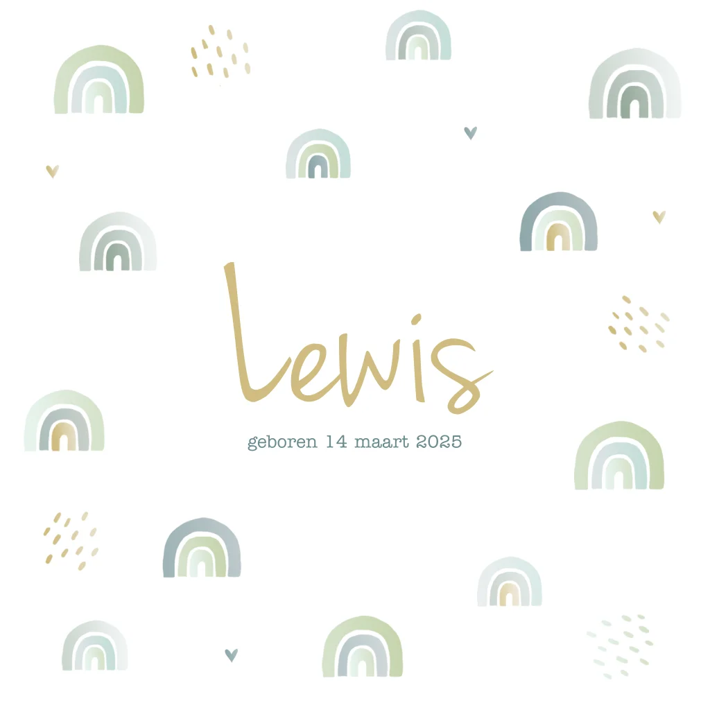 Geboortekaartje regenboogjes jongen blauw groen. (21136)