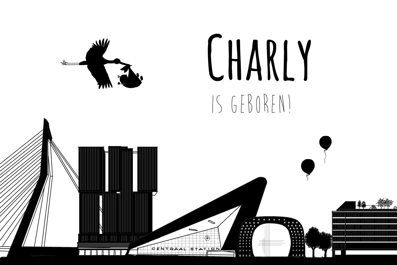 Geboortekaartje unisex Rotterdam met markthal erasmusbrug en station