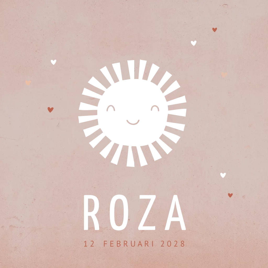 Geboortekaartje meisje met een zon in goudfolie foliedruk op een oud-roze achtergrond. (22988)