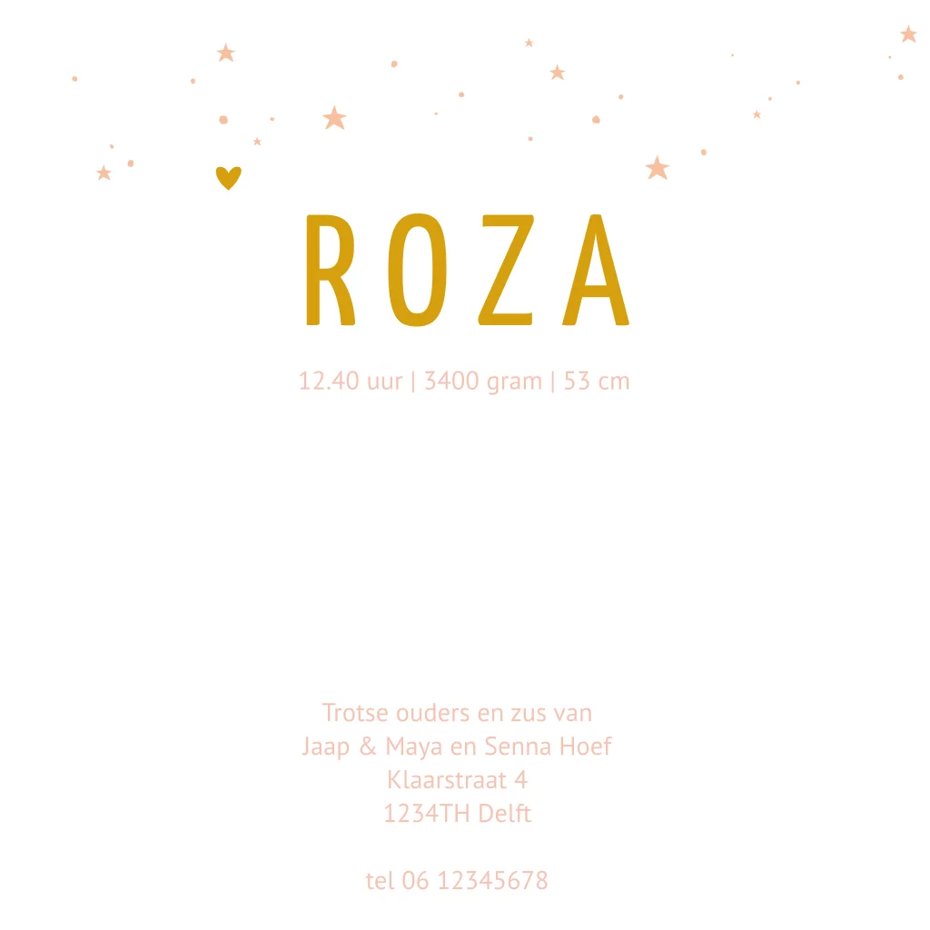 Geboortekaartje zonnetje meisje vierkant goudfolie