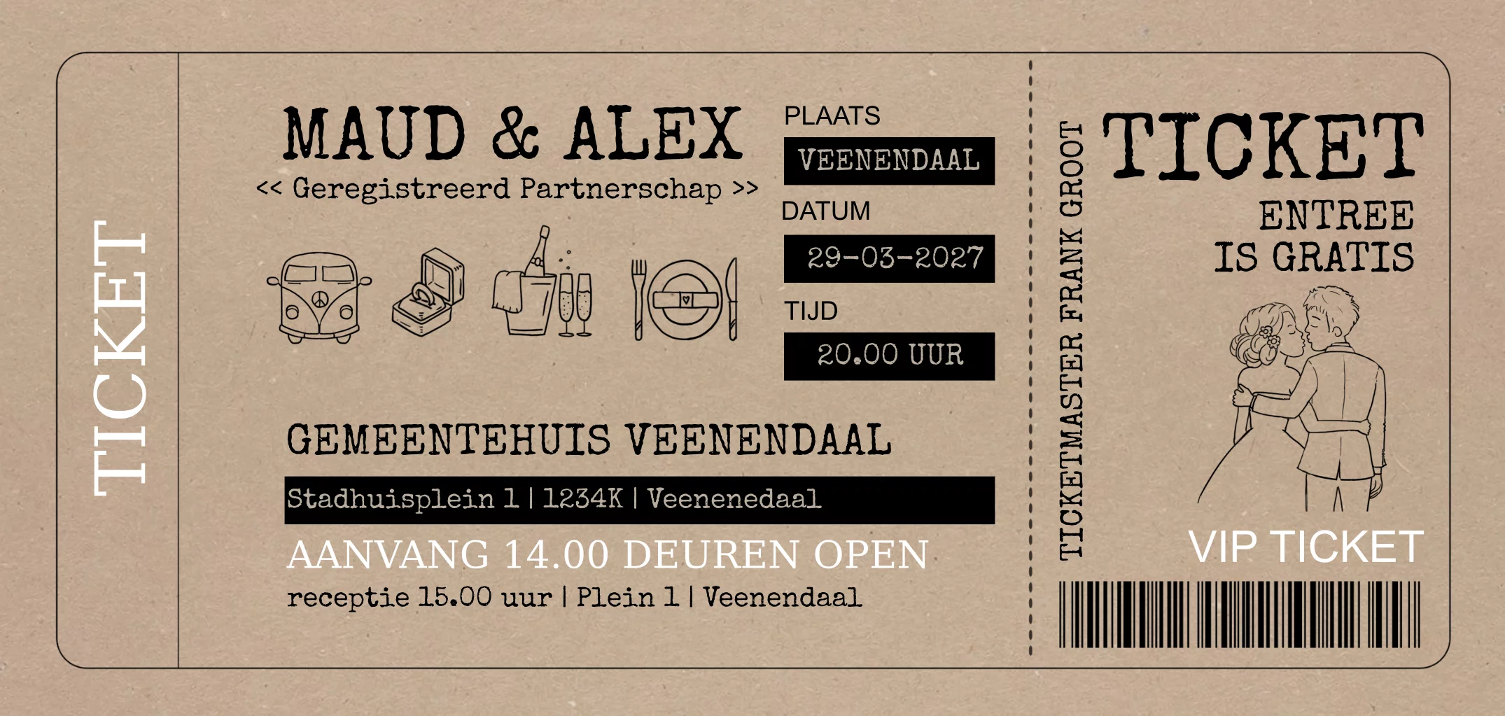 Geregistreerd partnerschap ticket lang wit met illustraties kraftlook