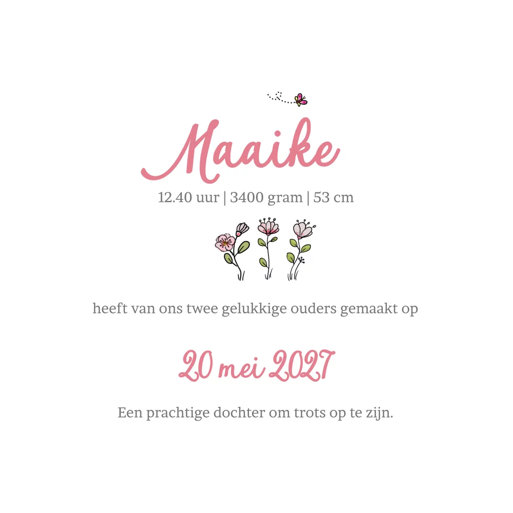 Derde kindje meisje geboortekaartje in voorjaar kleuren, broers en kleine baby zus met loopfietsje. (6673)
