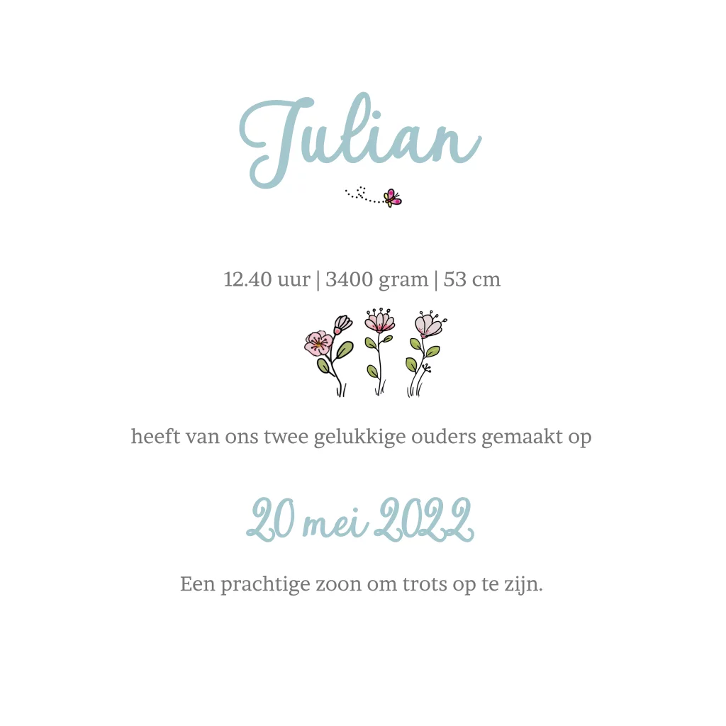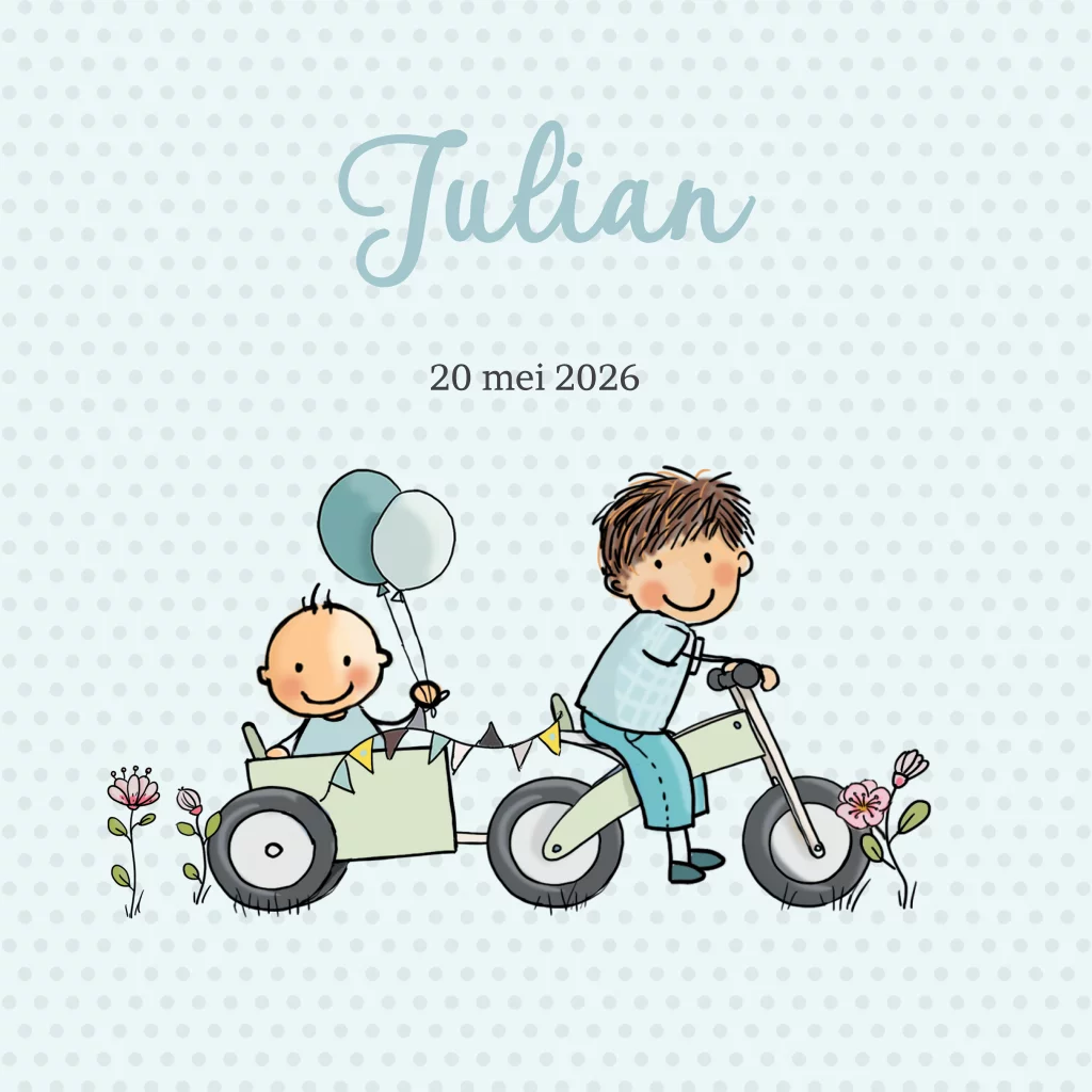 Getekend geboortekaartje jongen 2e kindje in fiets