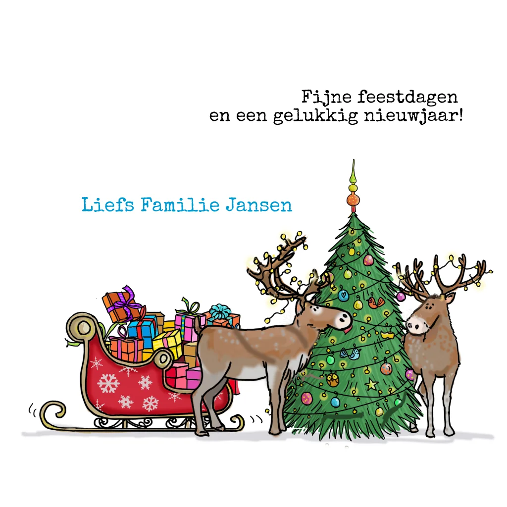 Getekende kerstkaart van VW bus met rendieren en kerstman getekend door Anet van de Vorst. (2182)