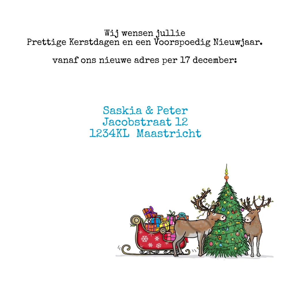 Kerst verhuiskaart maken van VW bus met rendieren en kerstman getekend door Anet van de Vorst. (2562)