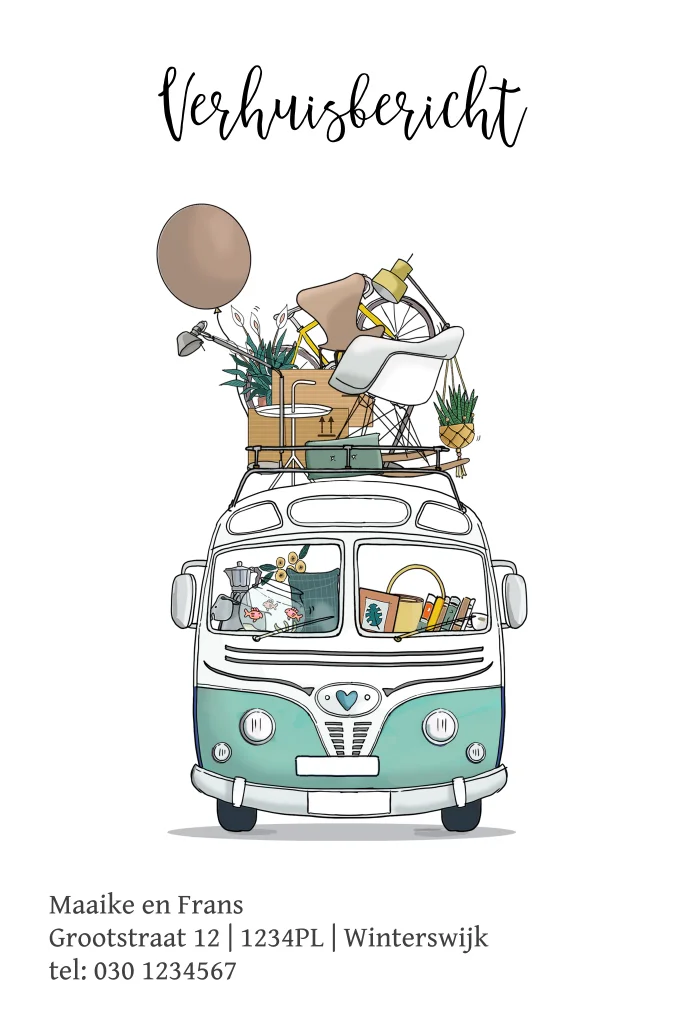 Grappige verhuiskaart met retro verhuis busje voorkant