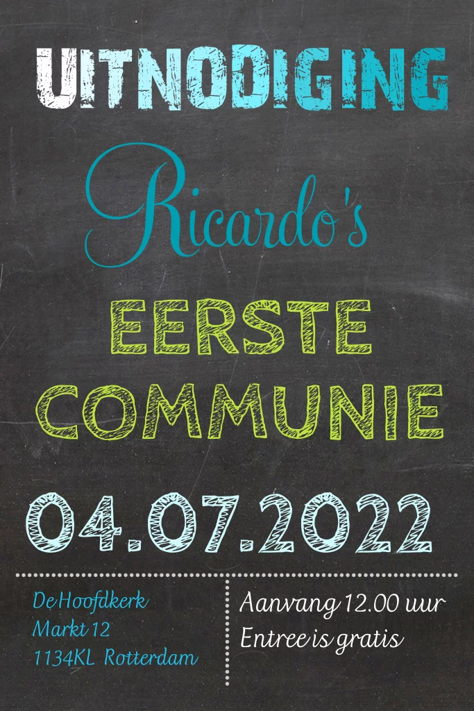 Hippe communie uitnodiging met frisse kleuren