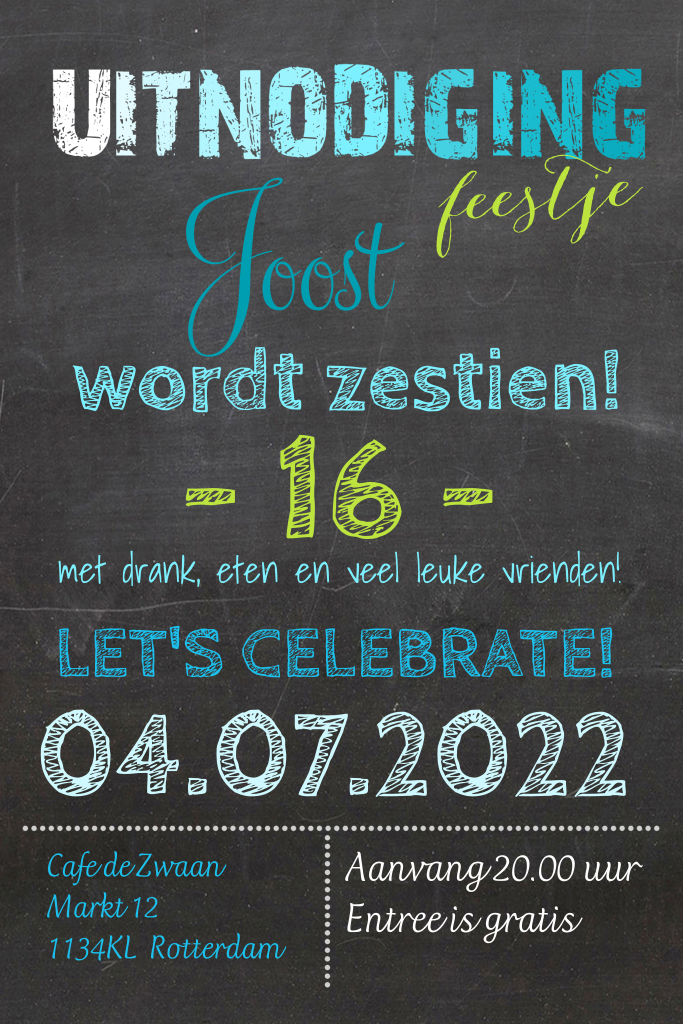 Hippe uitnodiging 16e verjaardag in krijtbord