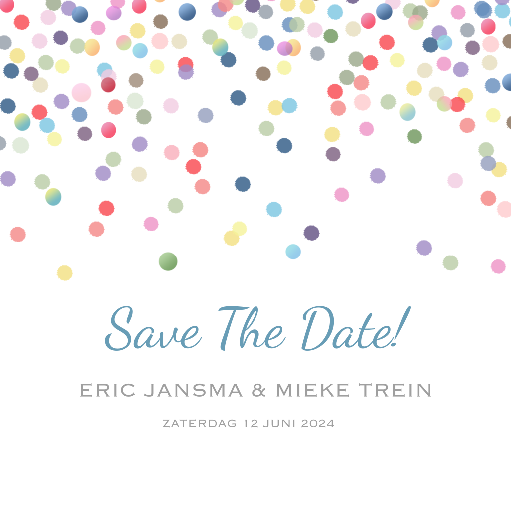 Hippe save the date kaart met confetti, super feestelijk en mooi. (3202)