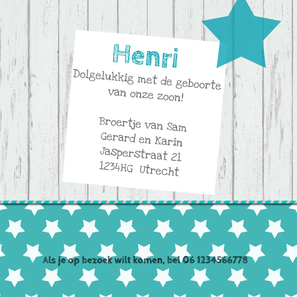 Mintgroen geboortekaartje jongen met sterren en stempel