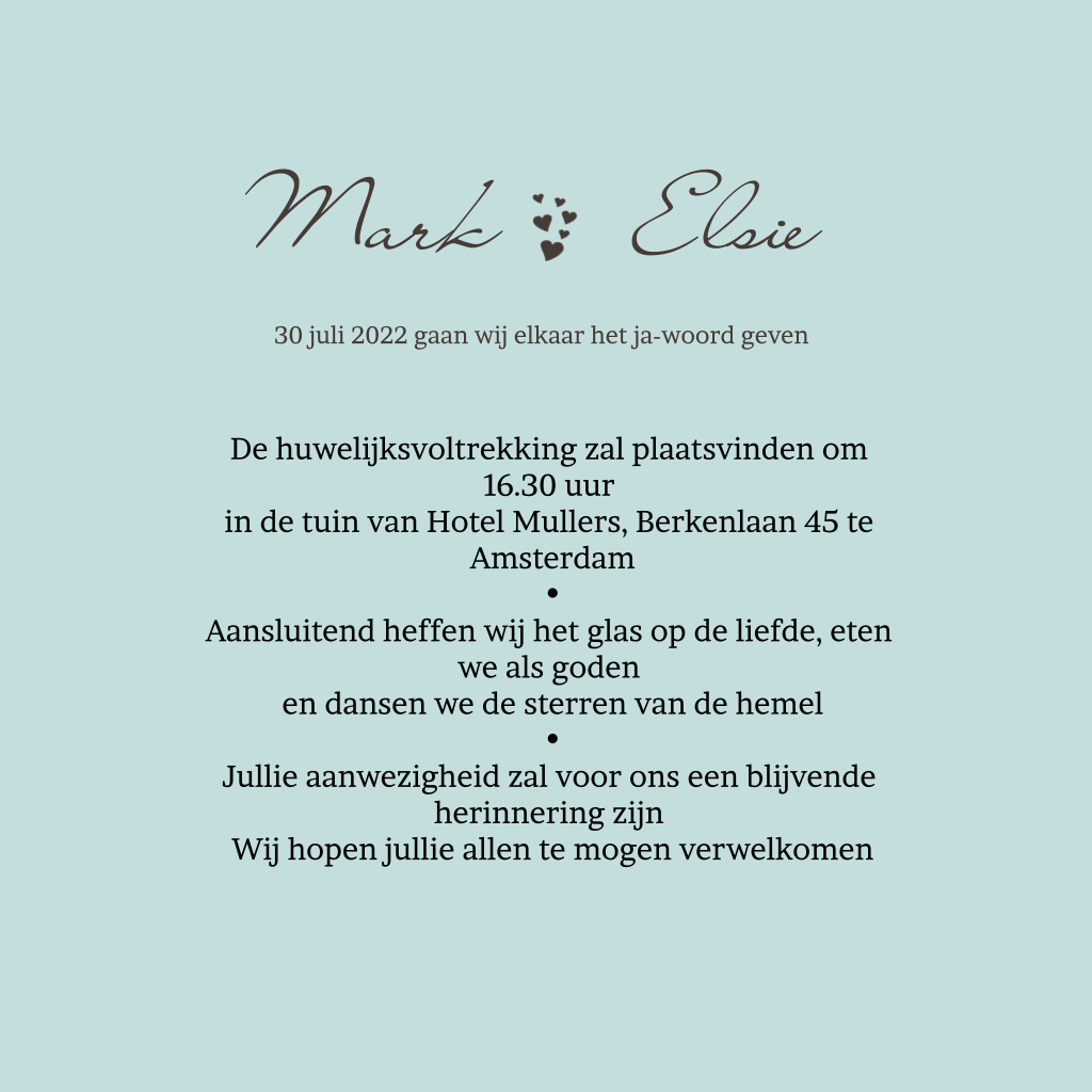 Trouwkaart met bruidspaar in fiat 500 silhouet blauw