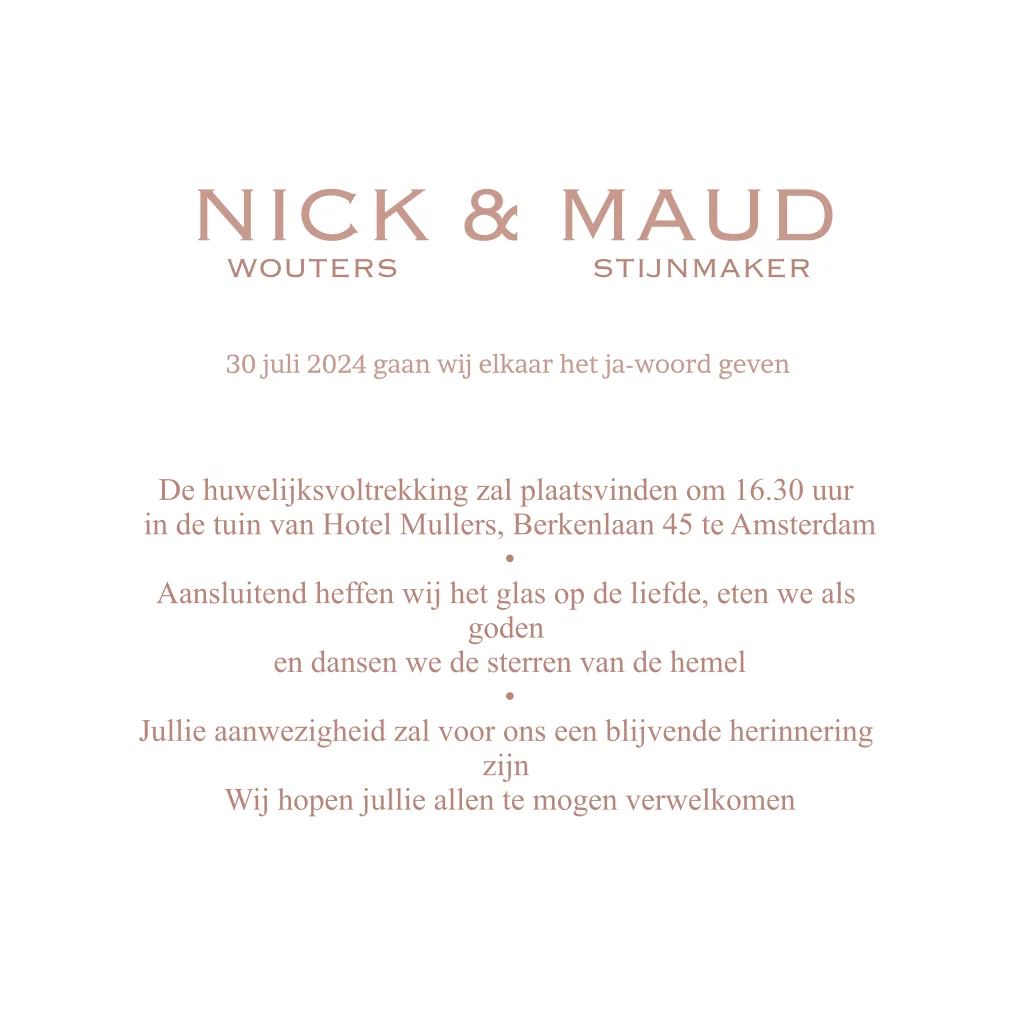 Trouwkaart van een bruidspaar met bruidspaar op fiets tandem in silhouet in oude en koper kleur. Hip en trendy! (6355)