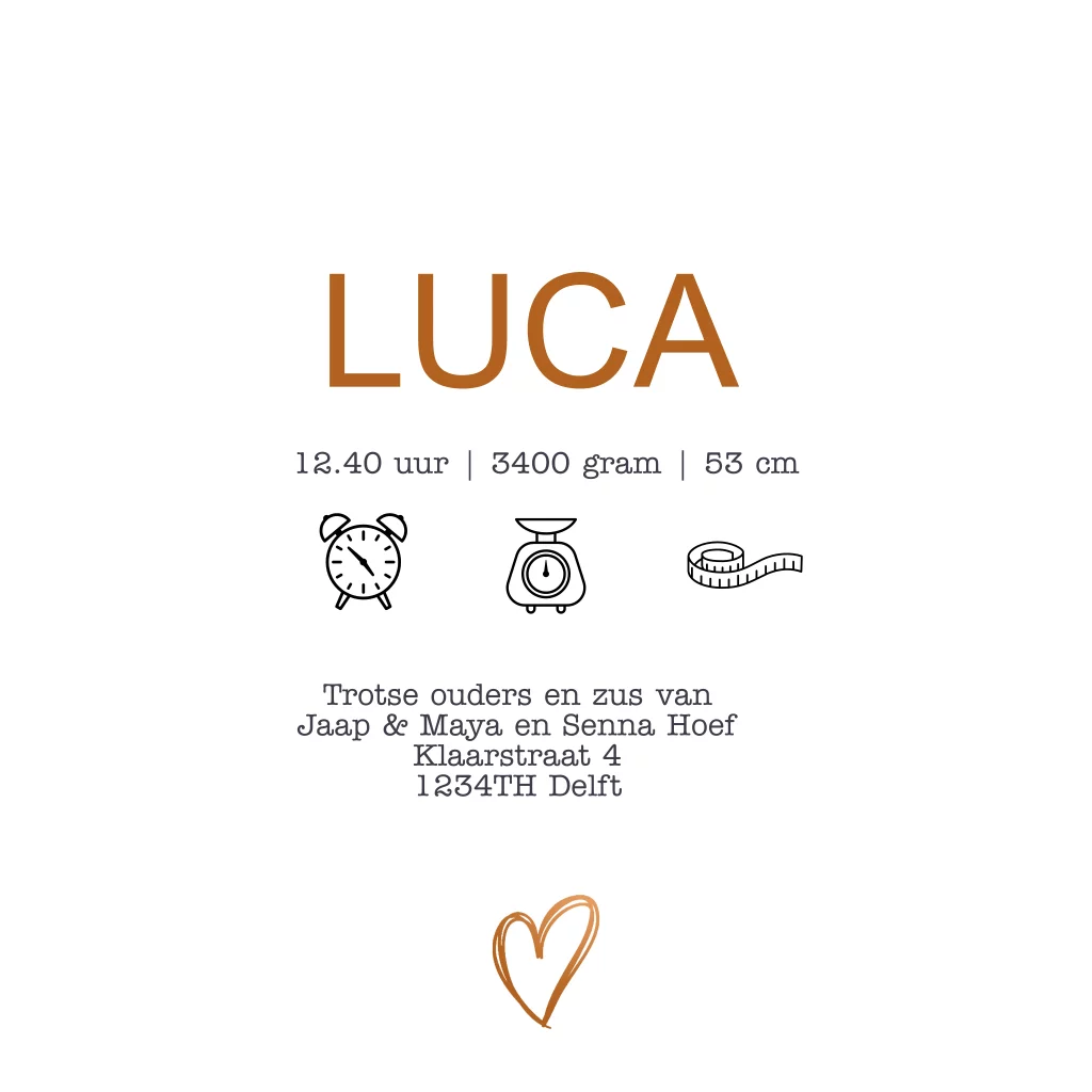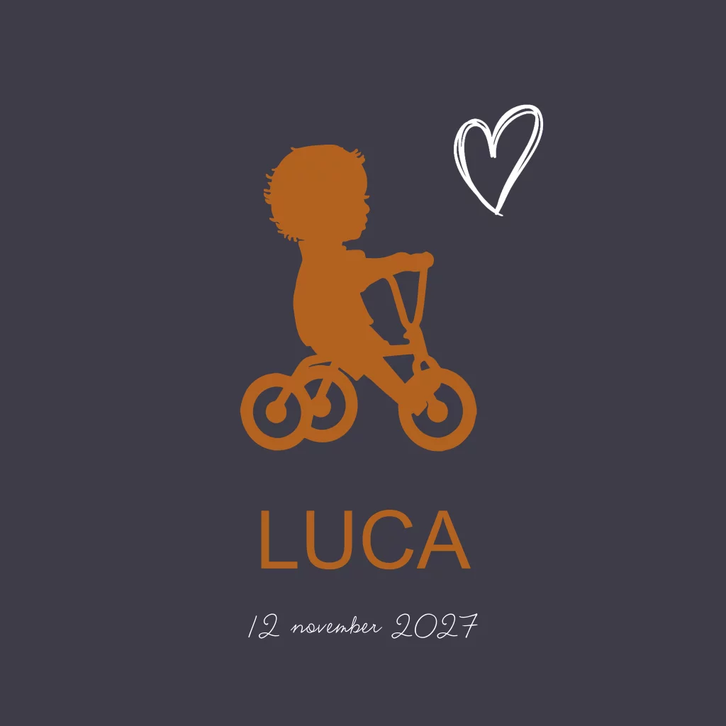 Geboortekaartje jongen op driewieler en hartjes. (7380) Dit is koperlook en geen foliedruk