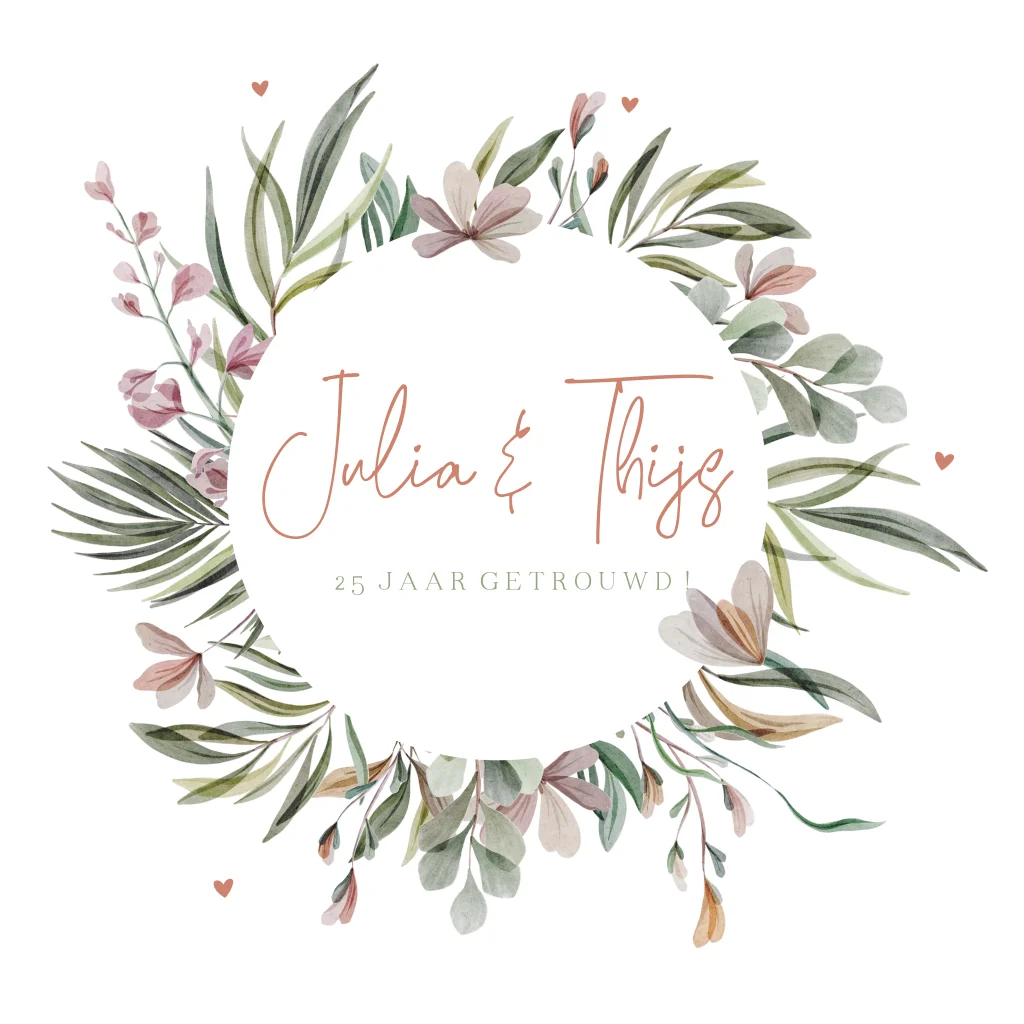 Jubileum 25 jaar getrouwd uitnodiging met krans prachtige bloemen