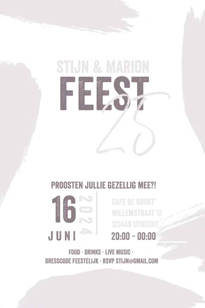 Jubileum uitnodiging 25 jaar getrouwd met vlekken