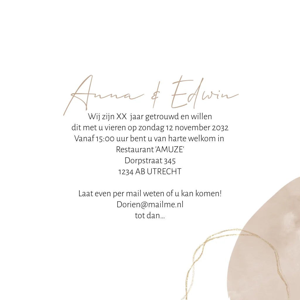 Moderne uitnodiging voor een jubileum met aardetinten en glitterlook.