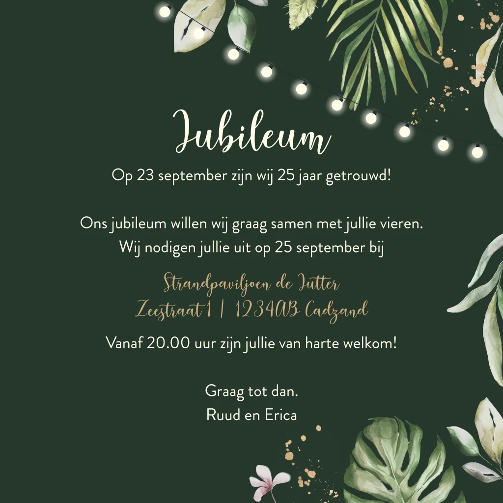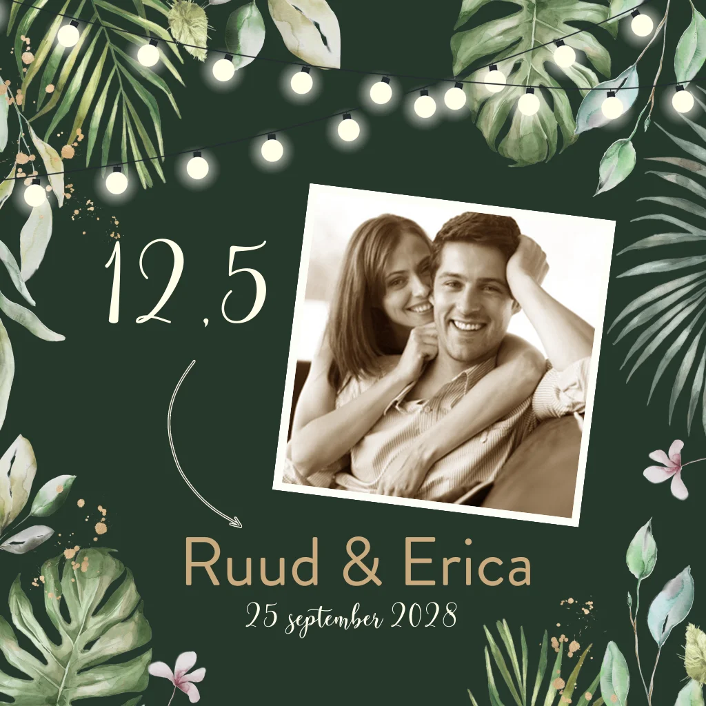 12,5 jaar getrouwd uitnodigingskaart met foto priklampjes met takjes groen. (23371)