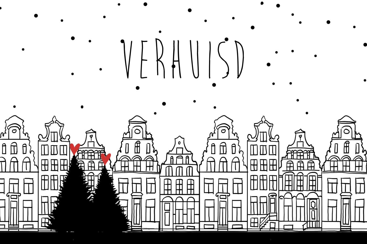 Kerst en verhuiskaart in 1 amsterdamse huisjes grachtenpanden