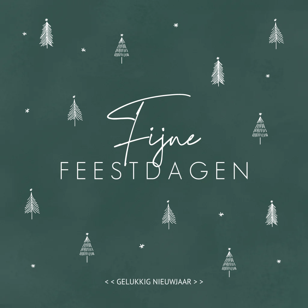 Hippe Kerstkaart met goudfolie sterren en kerstboompjes op de voorkant. (22836)