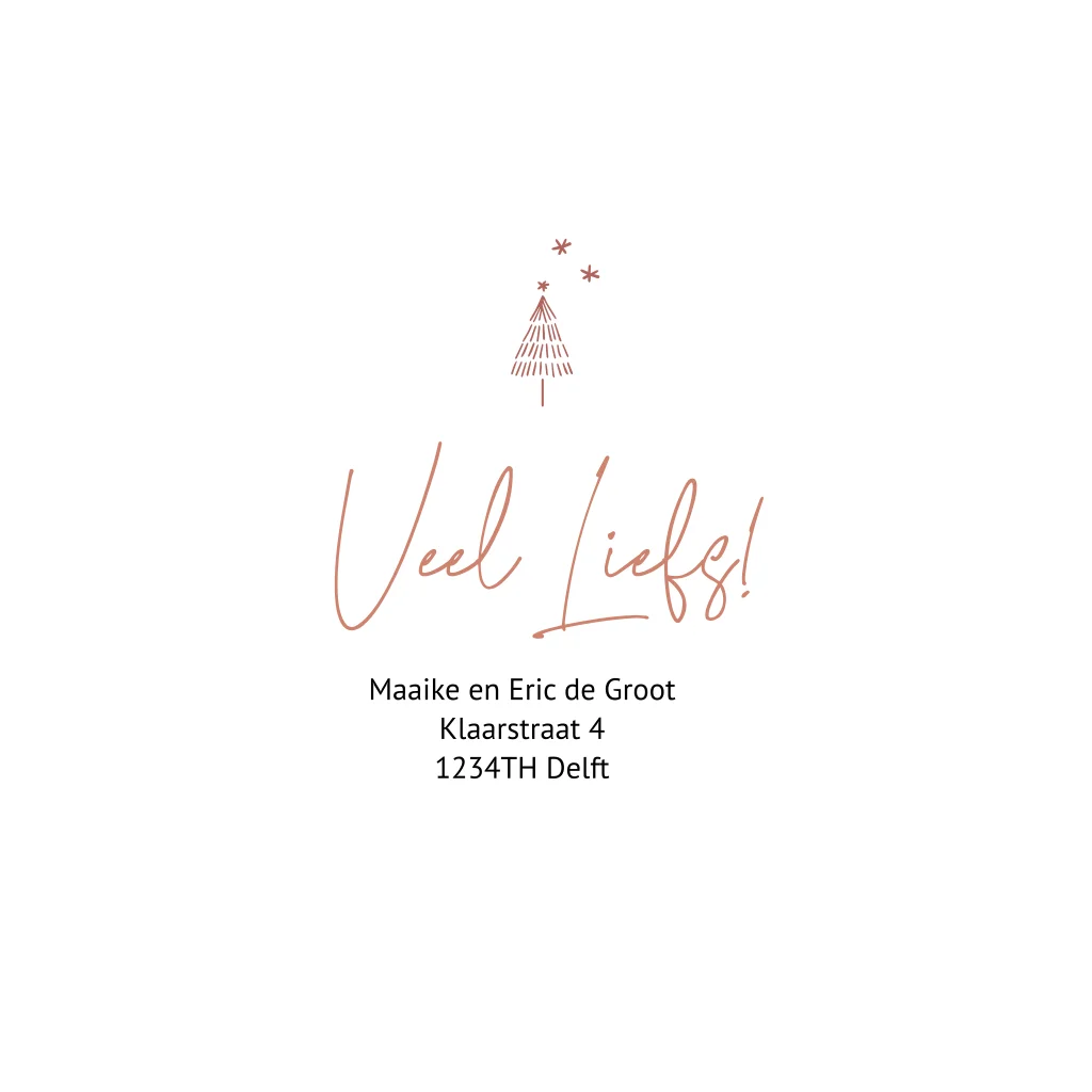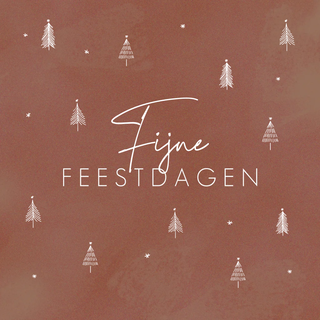 Hippe Kerstkaart in warm rood met goudfolie sterren en kerstboompjes op de voorkant. (22836) Kan ook zakelijk gebruikt worden.