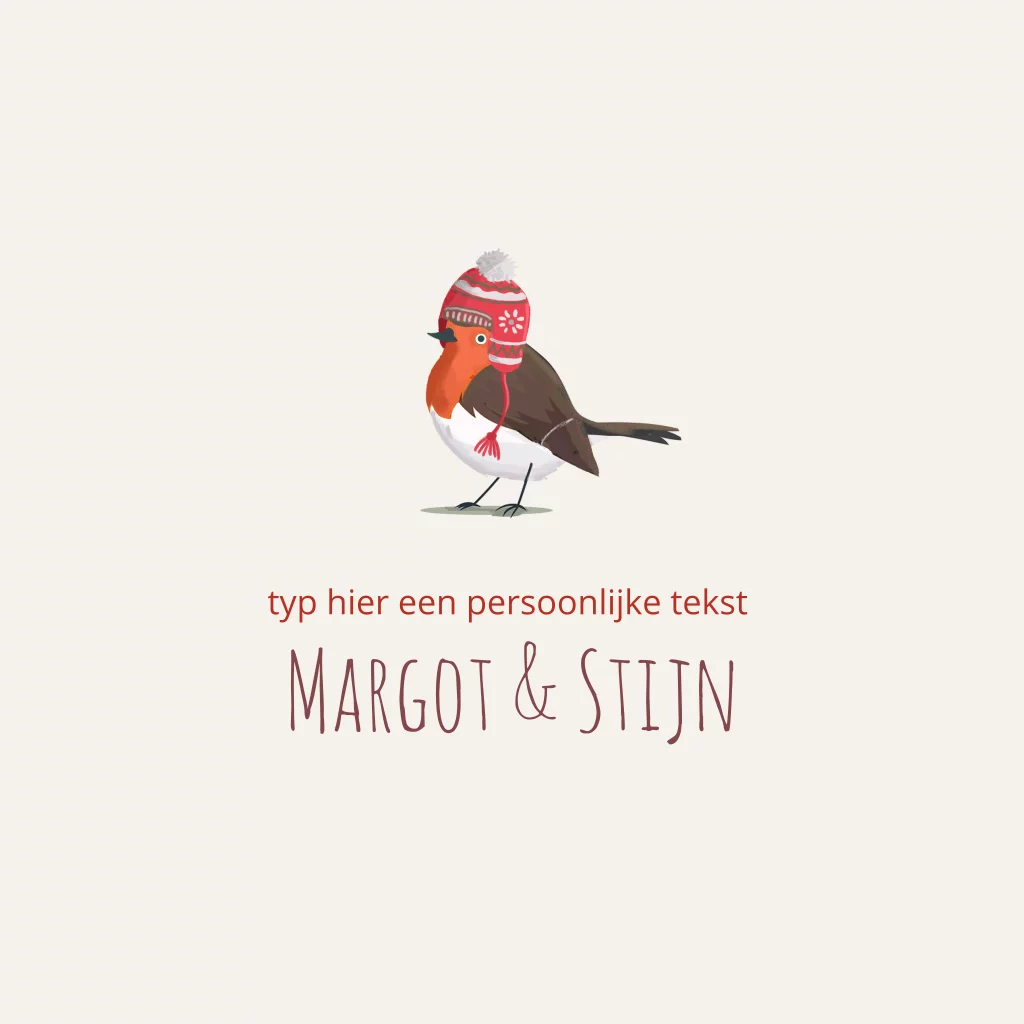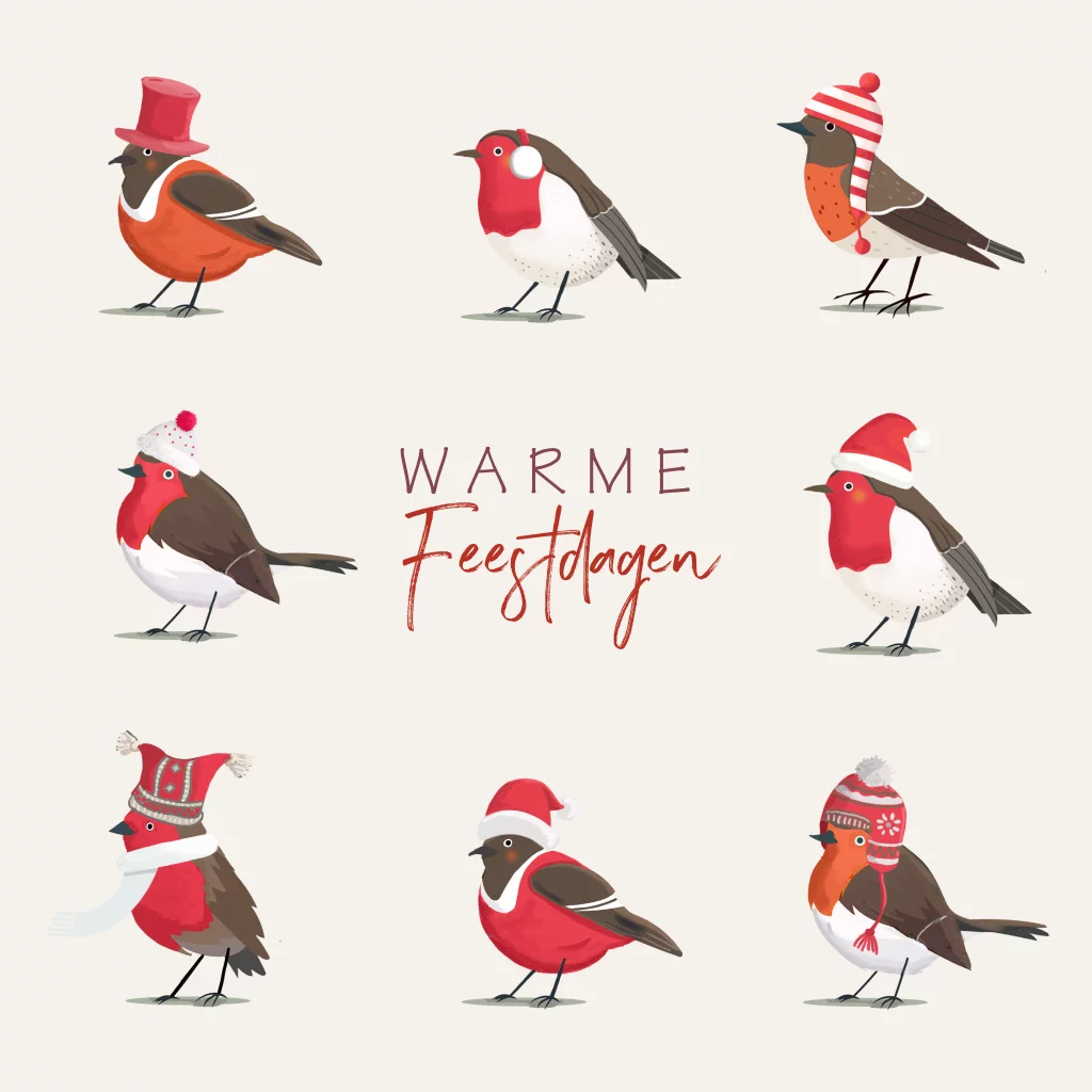 Kerstkaart roodborstjes met mutsen