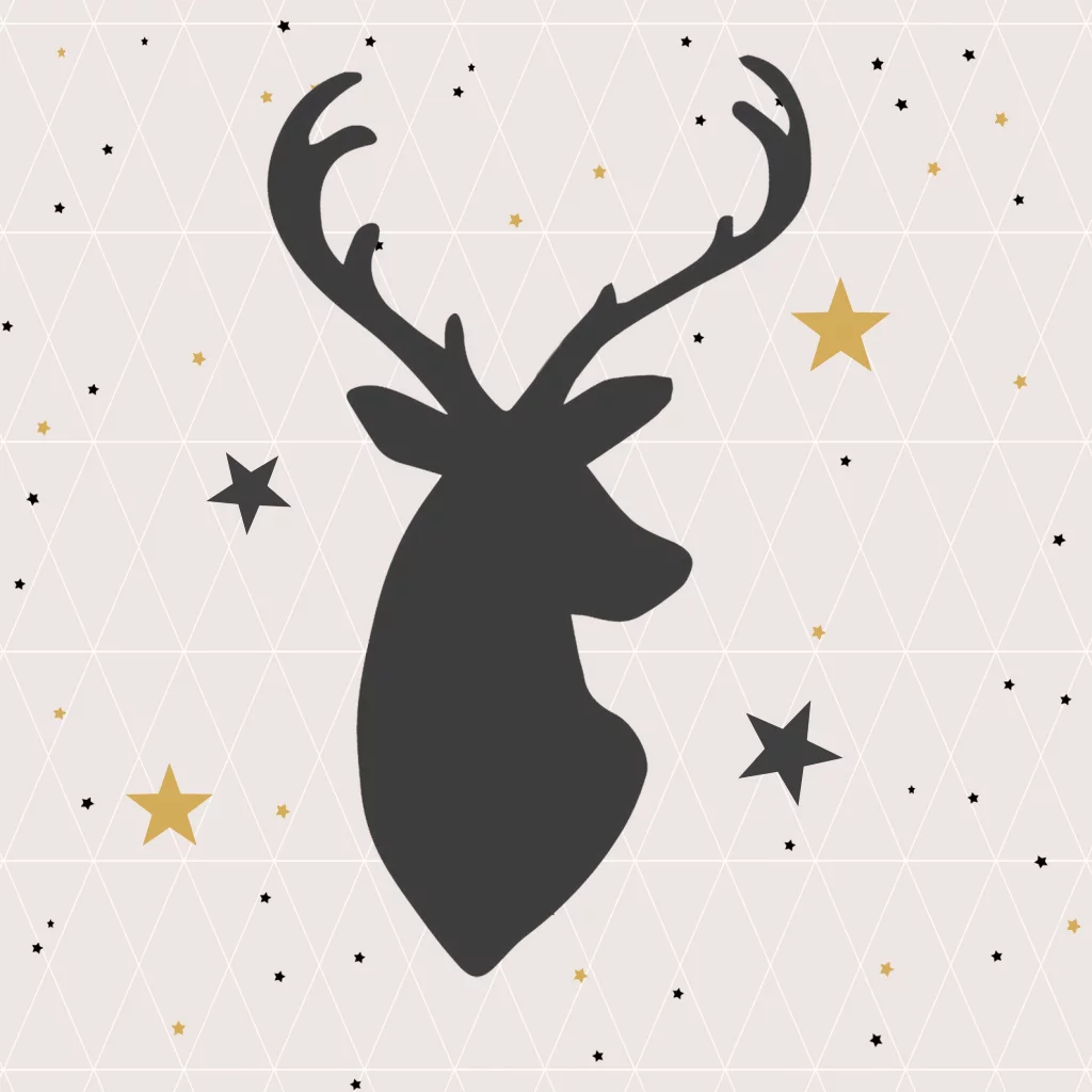 Stijlvolle kerstkaart rendier in champagne kleur met sterren en aanpasbare teksten. (3855)