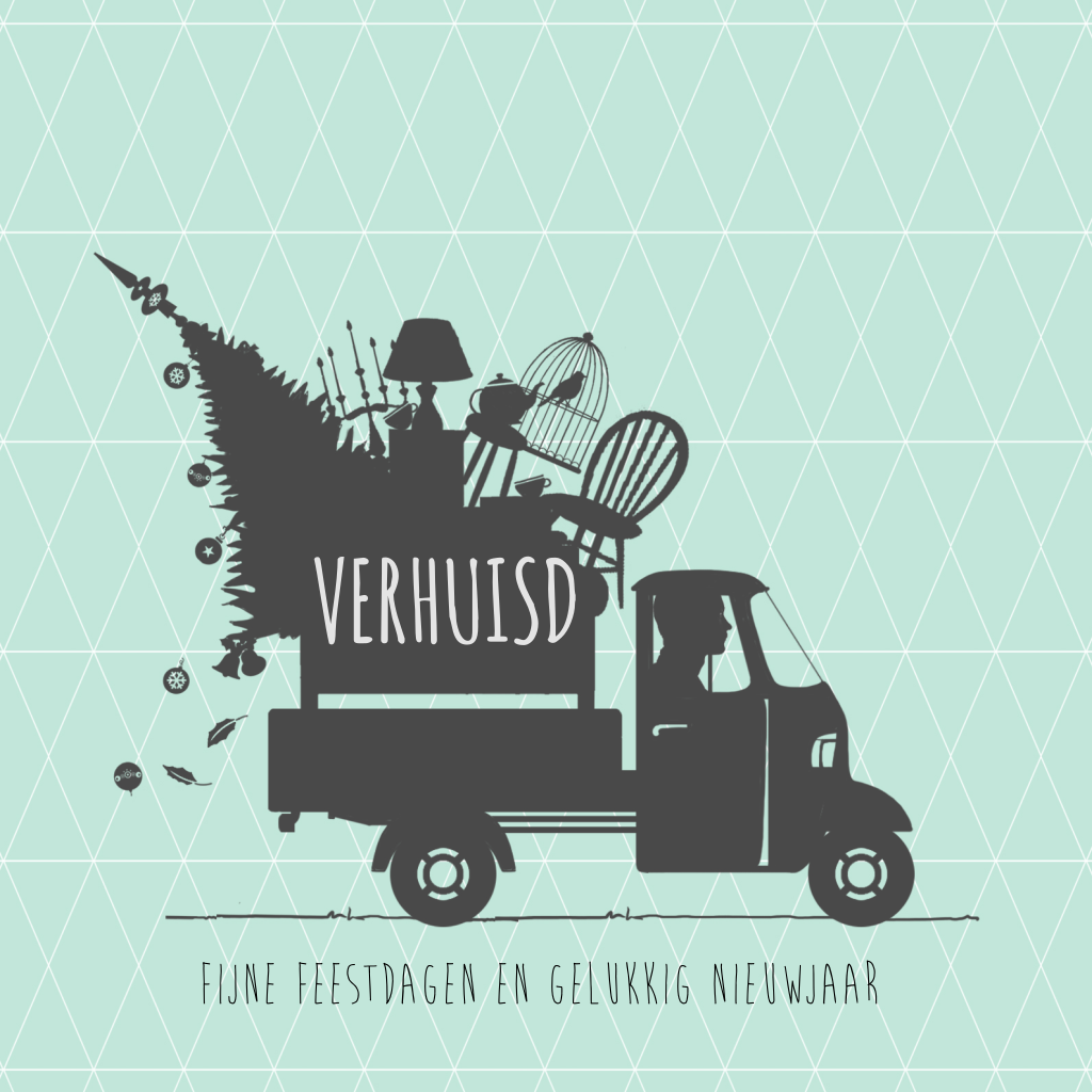Leuke originele kerstkaart - verhuiskaart van silhouet Vespa Ape met hippe achtergrond. (3839)
