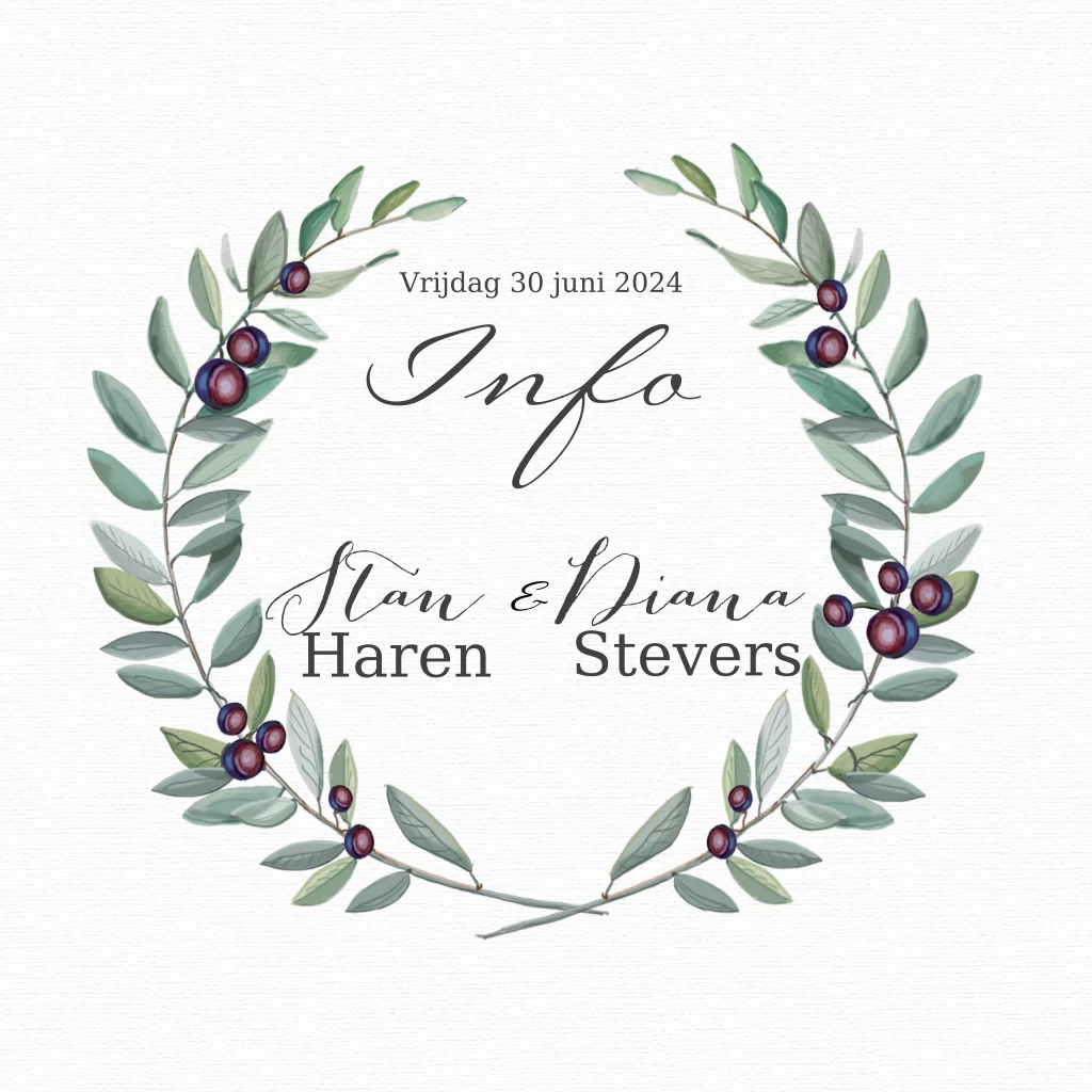 Klassieke dagprogramma tijdlijn infokaart in waterverf olijftakken, mooi en tijdloos. (2805)